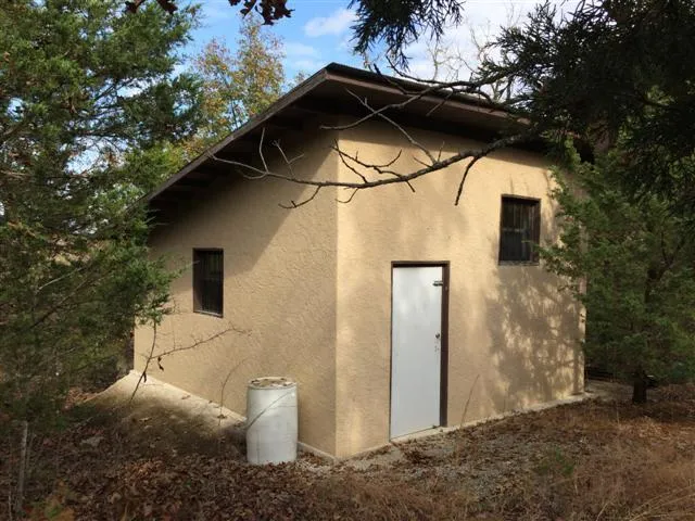 9 ACRES M/L WITH A CABIN BUILT LIKE A BUNKER! This hunting cabin was built to last. Built in 2005, it has concrete walls and a metal roof, solid steel door and rebar in the window ports. Cabin has a wood stove and a loft area for extra storage or sleeping. The exterior has been textured to look very modern. A gate and graveled drive lead to the cabin. The land slopes down to Pigeon Creek where the deer and turkey go to drink. $29,900.