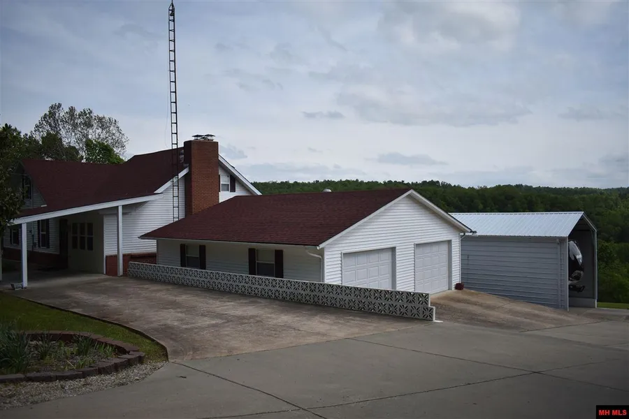 Just 12 short miles from Mtn. Home Wal-Mart sits this gorgeous 3BRM/4BA home on 12AC. Enter large covered front porch across beautiful hardwood floors w/wood beamed ceilings in main living area w/gas log fireplace & dining room big enough for entire family. Have dinner looking over amazing year round view of Norfork Lake. Large open kitchen w/granite countertops, stainless steel appliances, w/extra seating along breakfast bar area that also looks out over the lake. Enjoy your morning coffee on covered deck off dining area. Master suite & laundry room on main level w/2 more BRM w/bonus rm on 2nd floor. Fully finished walk out basement w/enormous amounts of storage & wood burning stove. 2 car att. gar, large workshop w/4 bay doors and electricity, 3 sided RV pad w/hook up. Brick patio w/small wooden outlook including a stone firepit overlooking lake. Acreage adjoins corps prop. Bring your ...