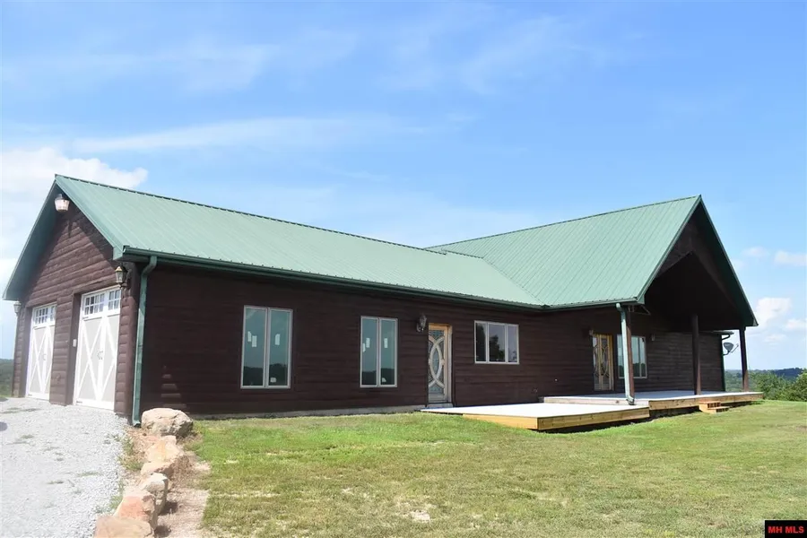 Social distancing at its finest! Panoramic views of gorgeous country setting on all sides of this 4brm/3.5ba, cedar sided home w/walk out basement on approximately 33.15 acres. This home literally sits on mountain top and is only 16 miles to Mtn, Home Wal-Mart. Office located on main level, tons of storage, open floor plan w/vaulted knotty pine wood ceiling. Beautiful hardwood floors on main level, solid knotty pine interior doors and trim w/oversized casement windows throughout both levels for fantastic views. Mud/laundry room off att. 2 car garage & walk-in pantry. 2 master suites, one on main level includes jetted soaking tub w/its own window&view of property along w/tile shower room w/multiple shower heads and a unbelievable walk in closet. 30 x 60 Workshop. This home is being sold as is, no repairs This property is bank owned. Conveyance by Special Warranty Deed. Arvest employees, d...