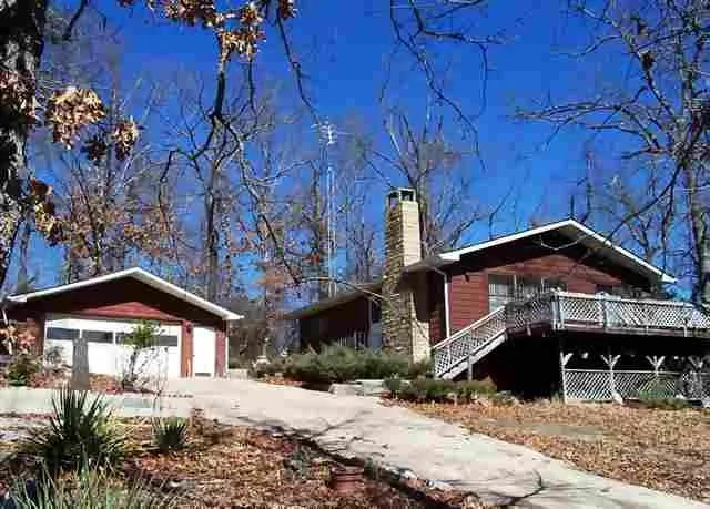 Park- like private setting, open floor plan, newer roof, large deck, 23 x 22 detached garage, 12 x 16 workshop, 1.5 acres m/l, only minutes from Bull Shoals Lake.