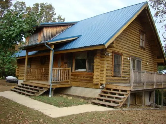 ENJOY YEAR ROUND VIEWS OF LAKE NORFORK from 2 decks or the bay window in this 3 BR 2 BA 3200 sq ft luxurious log home on 3.2 acres m/l. Features include vinyl/tile/laminate flooring, vaulted ceiling and great room plan. Borders government strip on land has deeded access. $369,000.