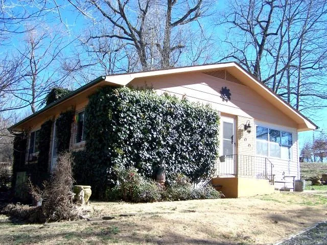 TOTAL SECLUSION: 9.1 acres m/l, 211' live creek frontage, 1012 SqFt brick home, 2 Coy ponds in waterfalls, beautiful landscape, sprinkler system, 2 wells, 5 miles to Mountain Home on a dead end road on 3/10 mile of good gravel. $98,500.