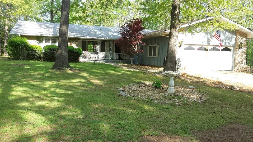 "A pleasure to show." Open living room w/lots of windows to watch deer & squirrels. Sitting area to watch fireplace. Master BA has ceramic tile in shower, and double sink area. 2nd BRM has wall to wall cabinets and counter tops for sewing that can remain or be removed. 3rd BRM could be all season sunroom or den. Outside entrance & lots of windows. Outside has to offer a large shop building that's insulated w/overhead door. Another 9x10 metal building, big garden area, good sized open patio. All on 2 ac m/l. This property is located in Lakeview, Baxter County, Arkansas. #113063