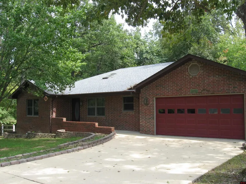Versatile floor plan, 2 or 3 bed, split bedroom, 2.5 Bath. All brick home, large lot, 2 car garage, work shop basement + storage building. Ceiling height custom cabinetry, pull out drawers. 2 miles from Bull Shoals boat launch.
