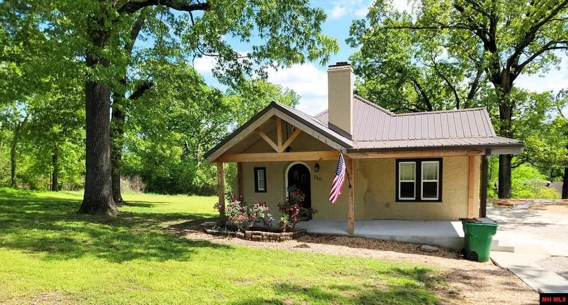 Preserving the 1935 character but improving this Cotter Home to today’s comforts was the goal of this rehab. Key original architecture remains, beautiful hardwood floors, brick gas fireplace (decorative only), original entry “Coach Door” all interior window frames, aged doors remain. Exterior windows replaced. Sliding french doors to primary bedroom adjoins the rehabbed bath. Custom shower, linen cabinet, sink & vanity, lighting, & ceramic floor. Kitchen’s custom cabinets, stone counters, stainless sink, appliances & all new lighting. Service utility rm. w/stackable W/D. Bonus Loft 5’4”head clearance, lighted & electric. 28’ covered front porch, open deck off back, cellar updated with concrete floor & ¾ wall, great storage! Additional lots included, new concrete pad for garage, blueprints included. All new pluming, electric, HVAC & duct work, drywall, lighting, metal roof, gutters, french drains. Ready for vacation or full time, a truly unique home you could fall in love with.