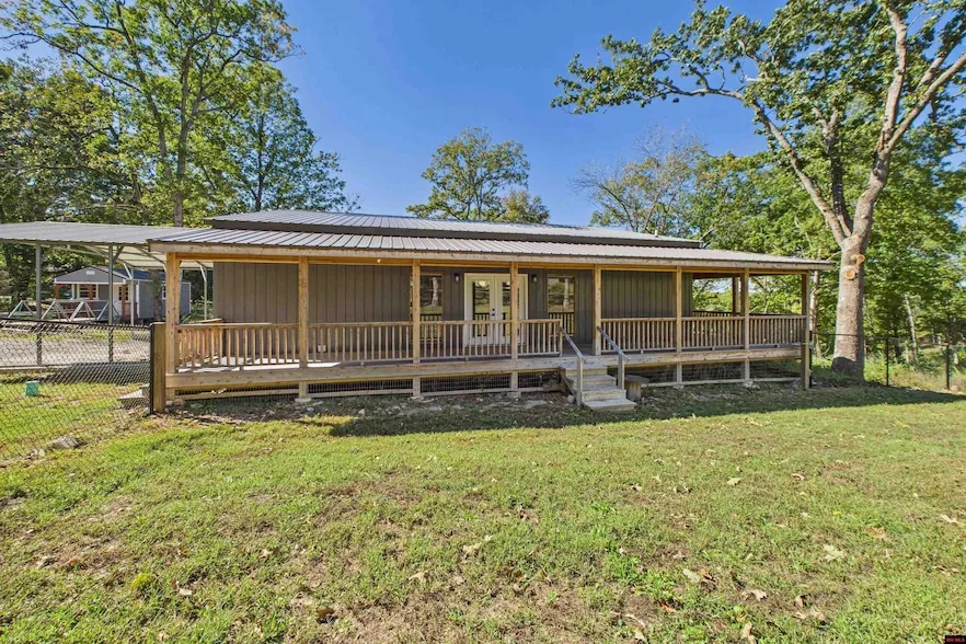 Beautiful 2 bedroom, 2 bath home on approximately 2 acres m/l just 1 2 mile from the Bull Shoals Lake boat ramp! Built in 2022, this 1,890 sq ft home features an open floor plan with vaulted ceilings and beautiful cedar throughout. The spacious master suite includes a 6 x 6 custom tile shower and a classic clawfoot tub. Enjoy the outdoors on the 1,100 sq ft wraparound deck overlooking the property wired for a hot tub and outdoor TVs. Additional features include a 30 x 26 attached carport, 12 x 20 storage shed, and a fenced side yard for pets. Comfort, quality, and lake living at its finest!