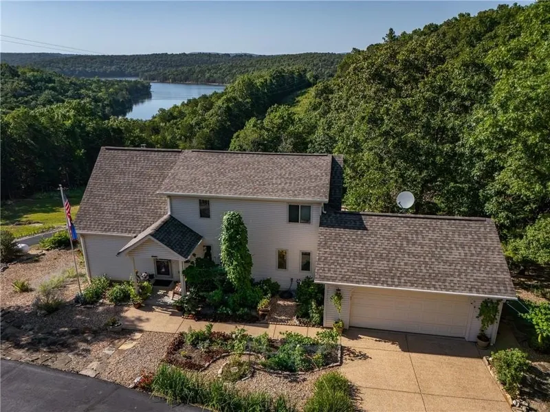 Amazing views of Bull Shoals Lake! This gorgeous home is sitting on 7 acres m/l at the end of the privately owned driveway. Inside you will find amazing views from the main level and the upper level. Primary bedroom is spacious, has a walk-in closet and its own private office/sitting area. This home also features a full basement with its own private kitchen, living space, bedroom and bathroom! If that wasn’t enough to knock your socks off, there is also a detached shop with its own paved driveway leading to it. Plenty of extras with this home, screened porch, central vac system, modern kitchens and bathrooms. Enjoy your own slice of paradise with this one-of-a-kind property. Minutes from White River Access and Bull Shoals Lake Access!