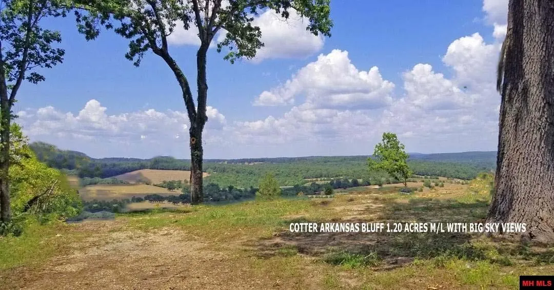 Now is your chance to own a premier location in Cotter Arkansas. Builder ready, freshly surveyed 1.21 acres m/l on cleared, prepd bluff lot with incredible year-round views. Watch the White River roll along below, with big sky and distant Ozark Mountain Views that are totally unobstructed. Located on a paved road with electric on pole, natural gas, city water and sewer and even Optimum high-speed internet ready at the road. Sellers are licensed RE agents and have a custom home plan especially designed for this location. (It is available at additional cost to the buyer.) Fish the White river, boat, hike the trails or just enjoy all that nature can offer you in one of the most desired locations of Baxter County.