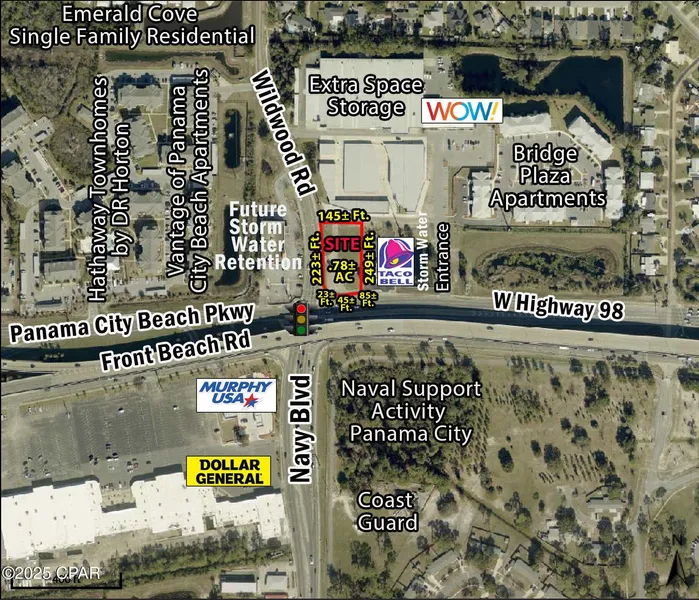Super prime location in the center of the activity on the east end of Panama City Beach, across Wildwood Road from 156+/- unit Hathaway Townhomes, 288+/- unit Vantage of Panama City Beach Apartment Homes, 113+/- Lot Emerald Cove Single Family Residential Development, as well as, other Condominium and Residential Developments. Very near this location is the recently completed 220+/- Acre Panama City Beach World Class Sports Park with 12-15 Multi-Purpose Fields for hosting Baseball, Softball, Soccer, Flag Football, Lacrosse, Rugby and more! Also, a K-8 Bay District School adjacent to the Sports Park, as well as, 1400+/- Residential Homes planned for the immediate area between East of Breakfast Point and West of the Sports Complex. All conveniently located between Patronis Elementary and Breakfast Point Elementary Schools.