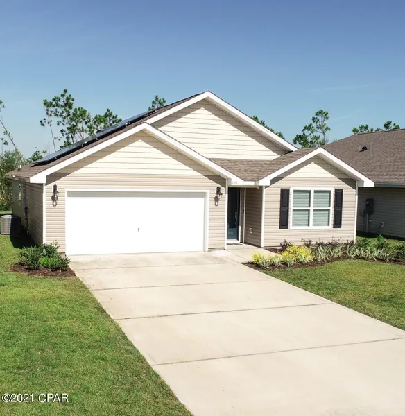 Very Rare 4 bedroom, 2 baths on the market. This is the very popular DR Horton, Cali floor plan. Very spacious split floor plan with 2 bedrooms just off of the foyer with a shared bath, another across the hallway. The kitchen is open to the dining and living area, features plenty of dark wood cabinets, durable Formica countertops, a spacious corner pantry, and a large center island with a sink and dishwasher. All appliances are black. Just off of the living room is the oversized master suite that has a walk-in closet, dual vanities, soaker tub with a separate shower. The home has LVP flooring in all wear areas, carpet in the bedrooms. Exterior offers a landscaped yard with a covered porch. Homeowner had solar panels installed to power the home. Gulf power electric bill is $21.01 per monthOther niceties are WIFI fans and lights many rooms, auto lights in hall bath room, hall way outlet lights. Nest Door bell for Security, and a Nest Thermostat for added efficiency.