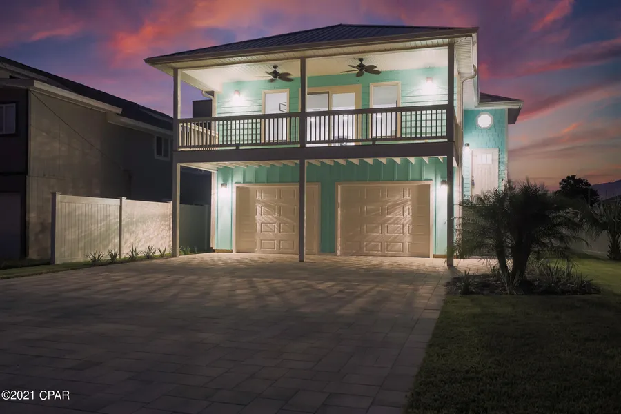 ''Angler's Paradise''. 1 minute walk to the Boat Ramp - Literally you can set sail in minutes and have your Truck and Trailer securely parked back home with 42 feet of parking plus a 2 car garage! This Coastal Cottage offers an expansive covered Balcony, Covered Side Porch pool side, stone pavers surround the gunite pool and fire pit. Zoysia sod, irrigation zoned front, back and side yard. Maintenance free vinyl fence, outdoor hot/cold shower. Hardi/Vinyl exterior, Metal Roof, Impact glass windows & doors add value and savings for Homeowners Insurance rates all in zone X. Boat, RV, Parking, Golf Cart ride to all the local hot spots and beach! Exceptional location right in between Grand Lagoon & Gulf of Mexicowhere you can have it all! All measurements are deemed correct, buyers should verify if they are important.