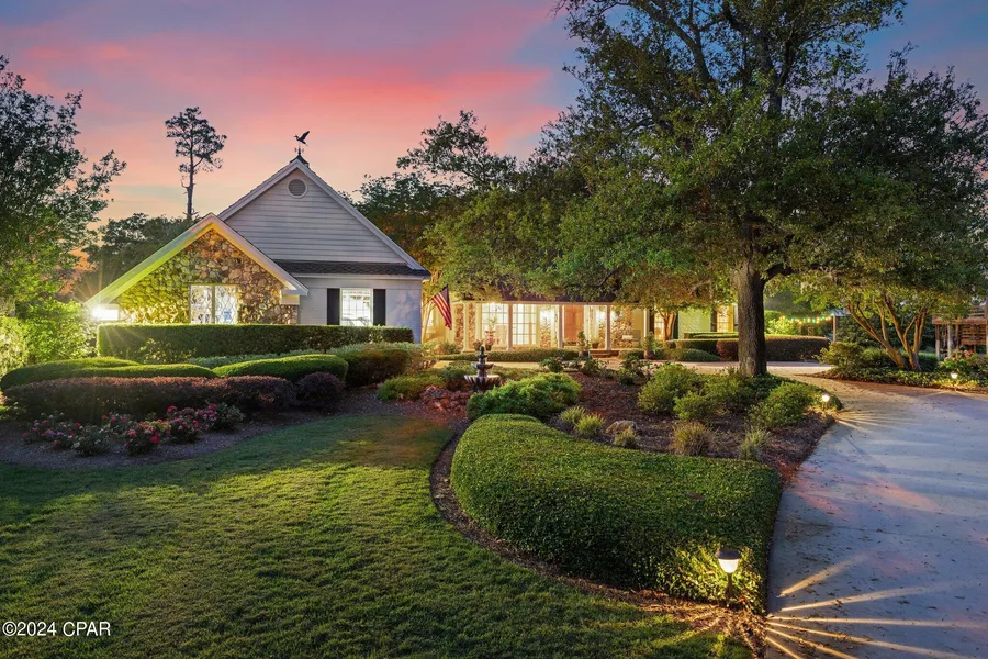Beautiful waterfront Kings Point home showcasing elegant design with meticulous attention to detail. Upon entering the home be prepared to be blown away by the spiral staircase and Murano Glass chandelier. As you continue through the home, pride of ownership is showcased in every room. The kitchen boasts an oversized island perfect for entertaining with a farmhouse sink overlooking the pristine landscaping in the front yard. From the sunroom enjoy gorgeous sunset views above the canal and bay.The open and charming formal dining area has views from the bow window across the front of the house as well as views of the pool and water beyond.Adjacent to this is the step-down living room; the perfect gathering space for a quiet evening with family or a movie/game night for family and friends!The study/guest room boasts lots of room and has an adjoining full bathroom. Across the hall the step-down primary suite opens onto a patio by the pool and has a spa bath with a beautiful garden view. Upstairs are 2 large bedrooms with ensuite full baths and a loft overlooking the spacious living area below. Venturing into the backyard the property boasts an oversized pool and boat dock surrounded by lush landscaping. The additional lot on the east side of the home purchased by the sellers in 2012 makes for a total of 1.3 acres and includes mature trees in addition to a playground. There are plans to build a two story pool house on this lot that will convey with the sale. The canal leads directly to the bay and is a short 10 minute boat ride to Shell Island. Do not miss out on your dream home!