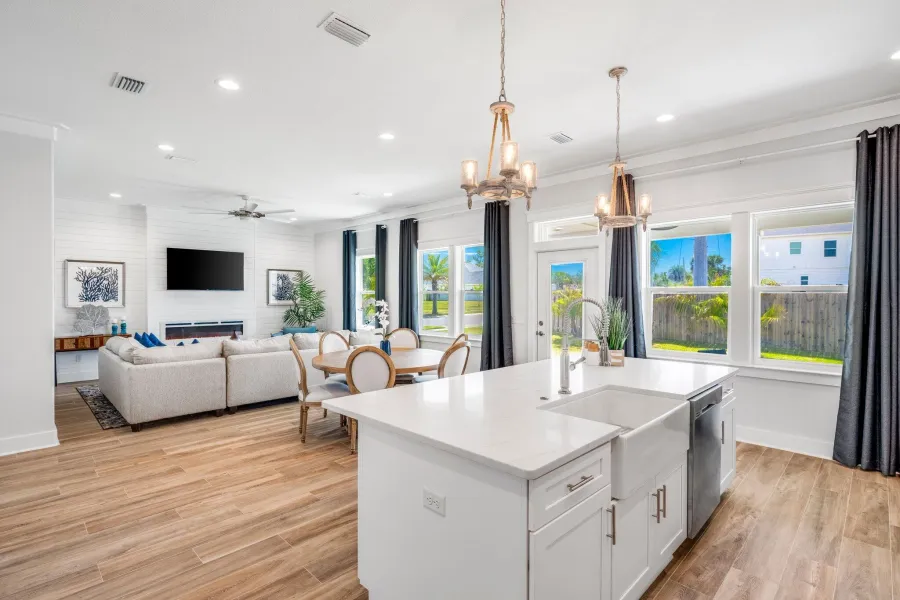 Welcome to Laguna Haven, Panama City Beach's newest 40-home gated community. Laguna Haven is conveniently located at the scenic and quieter West end of Panama City Beach - away from traffic and congestion. The Del Sol floor plan features 4 bedrooms, 3 full baths. Exterior features are cement hardie backer board siding, paved driveway, lush landscaping. Step inside the home to find wood-look porcelain tile, soaring 9-10 ft ceilings, crown molding, bullnose corners for those extra touches of elegance & a designer lighting package. Short-term rentals are allowed. Laguna Haven community includes lots of landscaped green space, and the HOA covers the maintenance of two gated entries, the community lights, sidewalks, and a covered mailbox area.