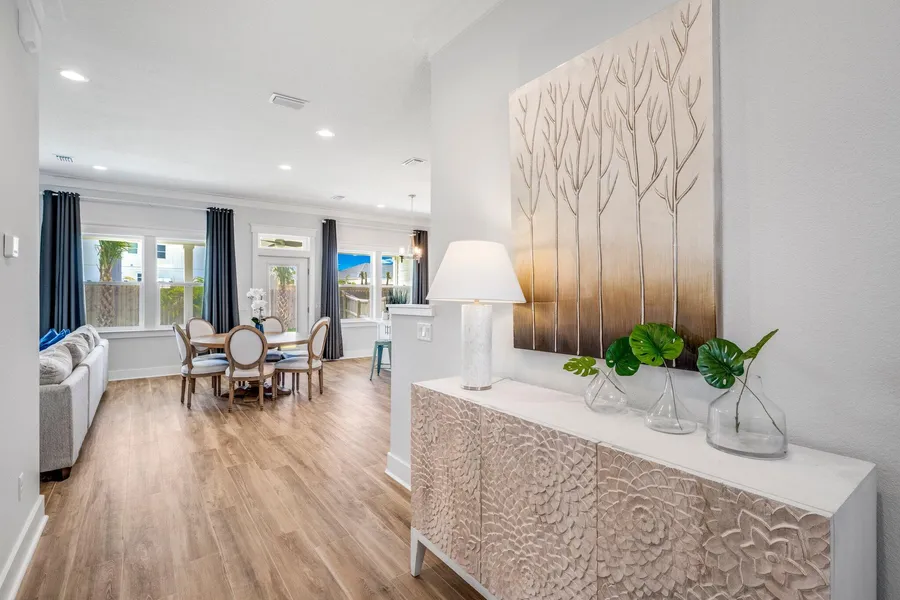 Welcome to Laguna Haven, Panama City Beach's newest 40 home gated community. Laguna Haven is conveniently located at the scenic and quieter West end of Panama City Beach - close to 30A and away from traffic and congestion. The Del Sol floor plan features 4 bedrooms, 3 full baths. Exterior features are cement hardie backer board siding, paved driveway and lush landscaping. Step inside the home to find porcelain tile, soaring 9-10 ft ceilings, crown molding, bull-nose corers for those extra touches of elegance & a designer lighting package. Short term rentals are allowed. Laguna Haven community includes lots of landscaped green space and the HOA covers the maintenance of two gated entries, the community lights, sidewalks and a covered mailbox area.