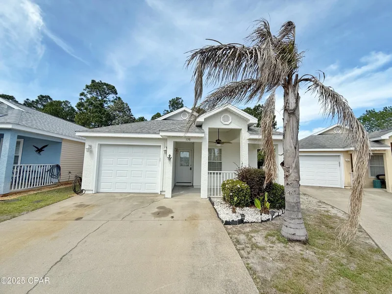Coastal comfort meets family fun- 3BR/ 2BA in Panama CIty Beach in the Palm Cove subdivision. Welcome to your perfect beach getaway! This affordable 3 bedroom, 2 bathroom home is ideally located in the heart of Panama City Beach, just minutes from the sugar white sands and turquoise waters. The home is nestled in a friendly neighborhood that features a community pool and playground area- perfect for families or vacationers. Step inside to an open floor plan with vaulted ceilings and tile floors throughout the living spaces, creating a spacious and easy to maintain central space. The master suite includes double vanities, a large walk-in closet, and plenty of room to relax and recharge. Enjoy your morning coffee or evening unwind on the back deck, surrounded by lush natural vegetation that offers both privacy's and peaceful vibes. With low traffic thanks to its location at the back of the community, this home is perfect as a primary residence, vacation spot, or investment property. Enjoy easy access to local favorites like Shipwreck Island Waterpark, Rock'it Lanes, and Duplin Winery, plus tons of delicious restaurants just around the corner. Don't miss your chance to own a slice of Panama City Beach paradise!