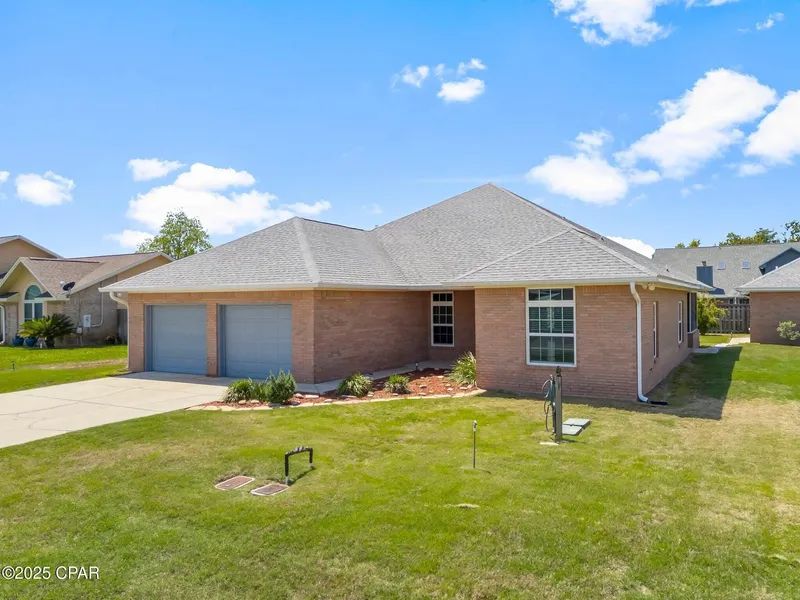 Beautiful 3 bedroom 2 bath 2,175 sf brick one owner home with detached studio/1 bath GUEST HOUSE or Mother In Law House. The main home is a split floor plan with a spacious living room with gas fireplace and hardwood floors. The kitchen has granite countertops, large breakfast bar and overlooks the living room. Other highlights include large laundry room, with cabinetry and large pantry, formal dining area, breakfast/sitting room, spacious master bedroom, renovated master bathroom that was renovated for handicap accessibility with walk in tiled shower, large master closet, hobby room, two guest bedrooms with a shared guest bathroom, built in bookshelves and desk, large screened porch, irrigation system with backflow prevention, small outdoor covered patio, partially fenced yard, 2 car garage, pull down attic access and large yard. The main home has a gas furnace, gas water heater, gas or electric dryer connection, gas fireplace and gas grill connection. The 560 sf Guest House features studio living with a kitchen, bathroom and sleeping area/living room perfect for extended family, guests or perhaps a rental. If you have teens this could be the perfect hangout/movie room area. Both roofs were replaced in 2019. All windows, soffits, gutters and air conditioners were replaced in 2019. This smaller neighborhood is peaceful with executive style homes throughout. Plenty of shopping, banking and restaurants nearby. It's also a short commute to Tyndall AFB. Make plans to tour this beautiful home today!
