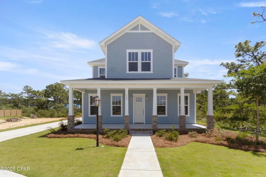 NEW CONSTRUCTION offered in the brand new Tapestry Park Phase III in Panama City Beach built by Southern Coastal Homes-2 blocks to the beaches of the Gulf of Mexico and beach access #43, close to shopping and dining, and the famous Pier Park. Homeowners have access to two community pools, lighted sidewalks and green spaces as well as access to tennis courts, basketball courts, and club house. This 4/2.5 CYPRESS floorplan is a brand new Southern Contemporary design with old Florida charm and coveted new technology and upgrades. INTERIOR large volume Great Room with an open floor plan, kitchen with center island and vaulted ceiling, custom cabinetry, walk-in pantry, pot filler and stainless steel appliances. The FIRST FLOOR Master Suite has a beautiful tray ceiling, expansive tiled shower, double vanity and his and her walk-in closets with direct access to laundry room. The second floor holds 3 well-appointed bedrooms ample storage space. EXTERIOR features of this home include Hardie siding with beautiful brick, 8 ft doors, rear detached garage with covered grilling porch. Home includes smart lock, tankless gas water heater, energy efficient appliances, dual A/C units and has been expertly designed by our design team.