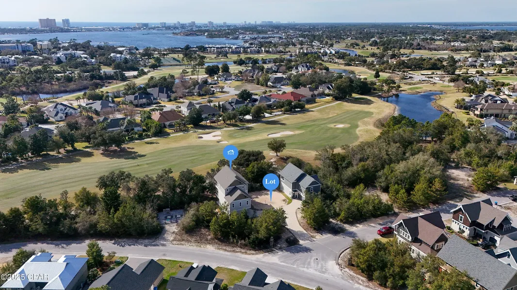 Discover luxury living and unmatched flexibility in this exquisite 3-bedroom, 2.5-bathroom new construction home--offered with the cleared lot next door! Located in the exclusive gated community of Sanctuary Beach and perfectly positioned on the 12th hole of the prestigious Bay Point Golf Course, this rare opportunity offers golf course views, added privacy, and endless possibilities. The thoughtfully designed open floor plan is filled with natural light thanks to expansive windows, showcasing stunning views of the fairway. Luxury vinyl plank flooring flows throughout the home, while the gourmet kitchen features modern appliances, beautiful cabinetry, and generous counter space for everyday living and entertaining. Your private owner's retreat includes a peek-a-boo bay view, custom walk-in closet, and a spa-worthy en-suite bath with dual vanities, a soaking tub, separate shower, and dedicated makeup station. Two additional bedrooms include custom closets and share a beautifully appointed full bathroom. Enjoy serene mornings or sunset gatherings on two private decks with sleek cable railing, or take advantage of the extra cleared lot--perfect for creating your dream backyard. Whether you envision a pool, a lush garden, extra parking, or simply more space to enjoy, the added lot offers flexibility rarely found in a gated community. A spacious 4 car garage and additional outdoor storage area provide ample room for vehicles, beach gear, or hobbies. Sanctuary Beach also features a community pool, and just outside the gate you'll find a secluded public bay beach--ideal for kayaking, paddleboarding, or simply relaxing. This exceptional offering blends elegance, comfort, and lifestyle with the bonus of extra space to make it uniquely yours. Don't miss your chance to own a home--and the lot next to it--in one of Panama City Beach's most desirable communities. Schedule your private showing today!