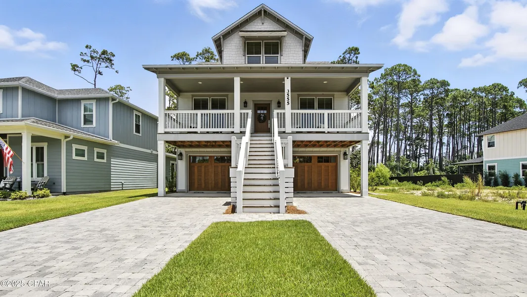 Welcome to coastal luxury in Sanctuary Beach--where nature, privacy, and elevated design come together. Tucked inside this exclusive gated community, this like-new 5-bedroom, 3-bath home was built in 2022 by award-winning Koehnemann Construction and has been barely lived in. With an ideal layout, incredible storage, and high-end finishes throughout, this home checks every box--and then some. The main living area is located on the second floor, offering peaceful views and added privacy. The gourmet kitchen features quartz countertops, a spacious island, KitchenAid appliances, gas stove with pot filler, and upgraded cabinet pull-outs. Crown molding adds an elegant touch in both the kitchen and living room, enhancing the overall finish. Just off the kitchen is a beautifully designed combined pantry and laundry room with cabinetry, a sink, and a built-in mini fridge. The open living area flo...