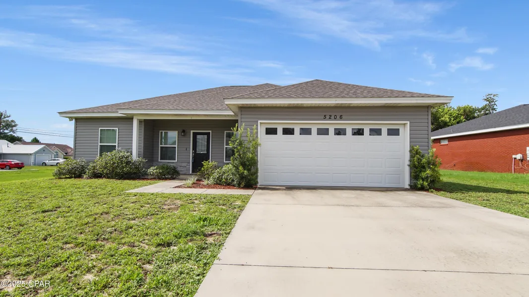 Welcome to this charming 3-bedroom, 2-bathroom home positioned on a spacious corner lot within a quiet cul-de-sac, offering both privacy and extra yard space! Step inside to find beautiful tile floors throughout the main living areas, plush carpet in the bedrooms, and a spacious open floor plan that's perfect for both relaxing and entertaining. The kitchen features stainless steel appliances and quality finishes, while the bedrooms offer comfort and space. The primary suite includes a walk-in closet and a double vanity in the en-suite bathroom. Enjoy your mornings on the covered back porch overlooking a fully fenced-in backyard, which is great for outdoor gatherings. Fresh mulch has just been added out front, and the home also comes with a sprinkler system for easy maintenance. The two-car garage also offers extra storage space and comes equipped with a built-in workbench. Conveniently located just 10 minutes from Tyndall Air Force Base and 12 minutes from Historic Downtown Panama City. Bonus: washer and dryer stay with the home!