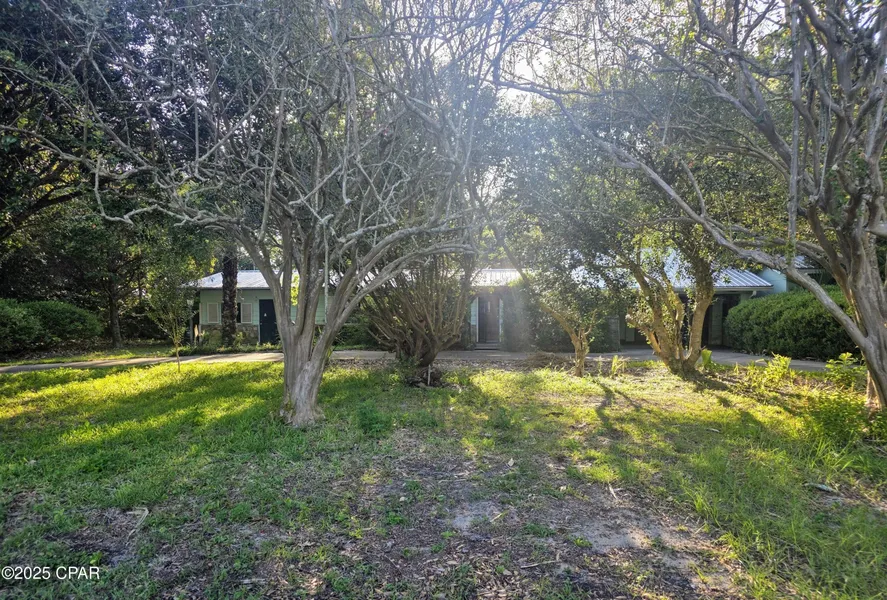 Discover an unparalleled RARE opportunity! Nestled on a generous 0.562-acres this unique property caters to both visionary builders and those dreaming of a vast, private homestead. The 1,836 sq ft original homestead was tailored for versatility and spacious living, with 3 bedrooms, 2 bathrooms. Additional rooms offer flexibility to be used as office area/ bedrooms. Character and warmth pervade the home, notably through two gas fireplaces and the Wood paneling throughout that add a cozy ambiance to the living spaces. Right off the kitchen walk out in the 15 x 15 Sunroom to enjoy the serene view. Take note of the presence of updated windows coupled with hurricane shutters, new metal roof in 2019 and a Generac generator that ensures year-round safety and comfort, safeguarding against the elements. The property is also equipped with numerous metal-roofed storage sheds (14x14, 12x10, 14x12 with electric) and enhancing its functionality and appeal as a true hidden treasure. Located mere minutes from the bustling Pier Park, known for its vibrant dining, entertainment, and shopping, and close to the idyllic 30A and Frank Brown Park, this property promises a lifestyle of ease and enjoyment. The neighborhood is golf cart-friendly, near an array of shops and restaurants, and offers proximity to the Gulf of Mexico's exquisite sugar-white sands. With no HOA to limit your vision, this property stands as a versatile canvas for creating a grand homestead or embarking on a lucrative development project, capturing the essence of serene living and remarkable potential in Panama City Beach.