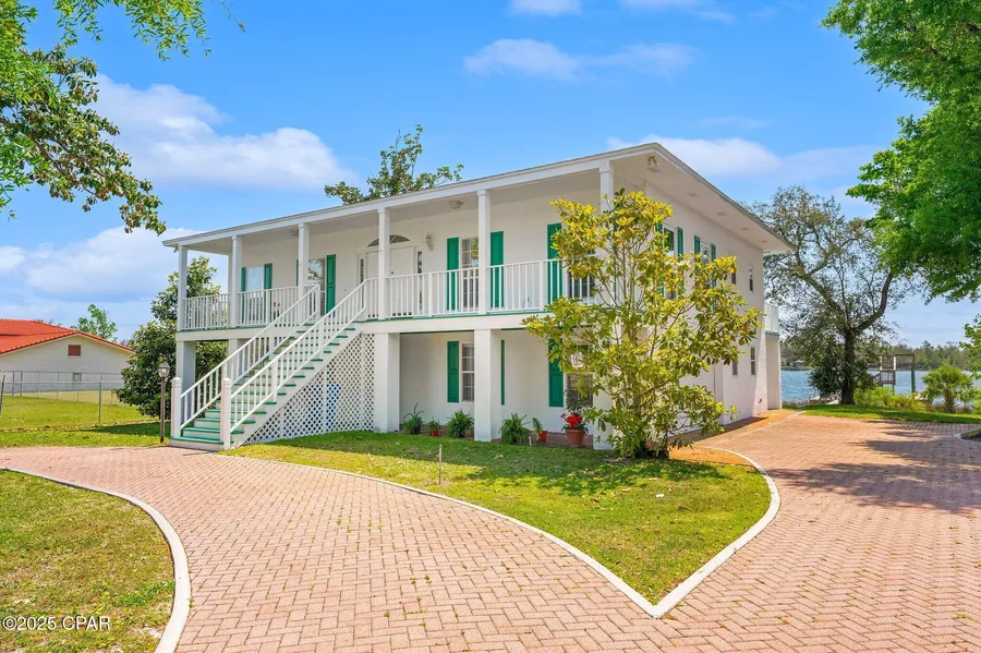 Welcome to 7552 Coleridge Road, a beautiful home on deep water where classic design meets relaxed waterfront living. Nestled along the peaceful waters of Callaway Bayou and just minutes from Tyndall Air Force Base, this home offers both a serene setting and convenient access to everything the area has to offer. Set on beautifully landscaped grounds beneath a canopy of mature oaks, the property makes a striking first impression with its circular drive built with pavers and symmetrical façade, the picture of timeless style.