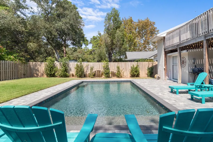 This spacious coastal retreat on the West End of Panama City Beach offers the perfect blend of comfort, style, and convenience. Just a short walk or golf cart ride to the beach, this two-story home designed for easy beachside living. Inside you will discover new floors and a stylish kitchen featuring stainless steel appliances and granite countertops. The interior is beautifully designed with calming neutral tones that create a bright, welcoming feel throughout. Out back, a private pool invites you to unwind or entertain friends after a day at the beach. This home's meticulous upkeep make this property truly move-in ready. Information contained within this listing such as lot dimensions, is deemed to be accurate but is not guaranteed. Buyer to verify. A durable metal roof, installed in 2019, ensures lasting peace of mind. Call your agent now to schedule your appointment. Information contained within this listing such as lot dimensions, is deemed to be accurate but is not guaranteed. Buyer to verify.