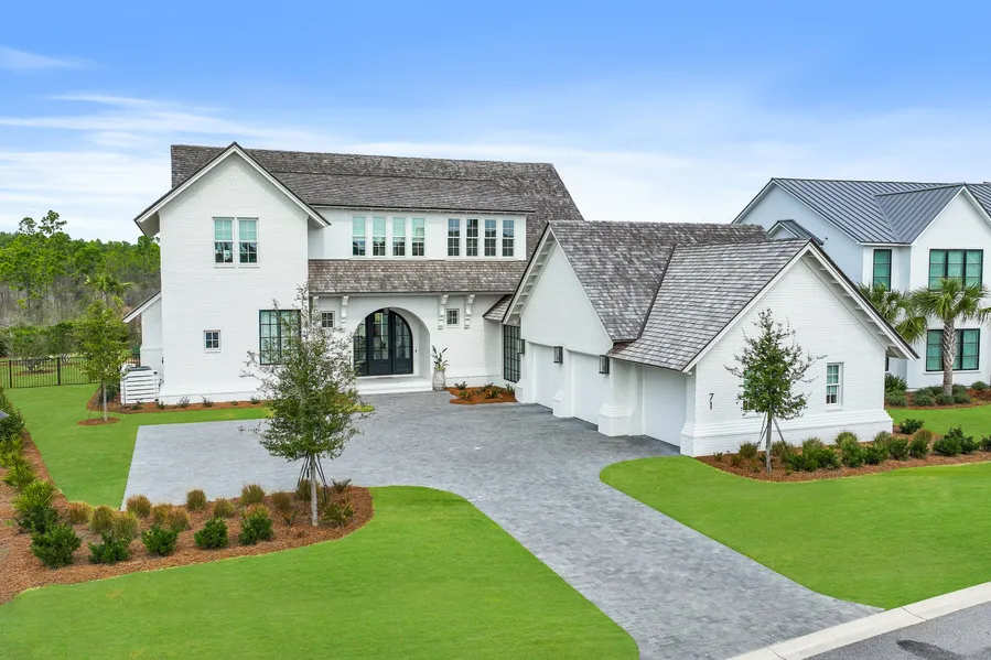 Thoughtfully designed by Greg Jazayeri, expertly built by Regal Stephens, and exquisitely finished and furnished by Tracery Interiors, this four-bedroom, five-and-a-half-bath custom home in Watersound Camp Creek embodies craftsmanship at its highest level. From the moment you enter, every detail reflects artistry and intention — from the coral stone floors that flow seamlessly indoors and out to the natural marble and quartzite countertops and handcrafted Grimes cabinetry. The primary suite is located on the main level, creating an easy rhythm between private retreat and open gathering space. Expansive sliders blur the line between the living room and the outdoor entertaining area, where dual grills, a spa, and a cabana with pool table set the tone for relaxed sophistication. Distinctive architectural features include all-brick construction with custom Hardie accents, a wood shingle roof...
