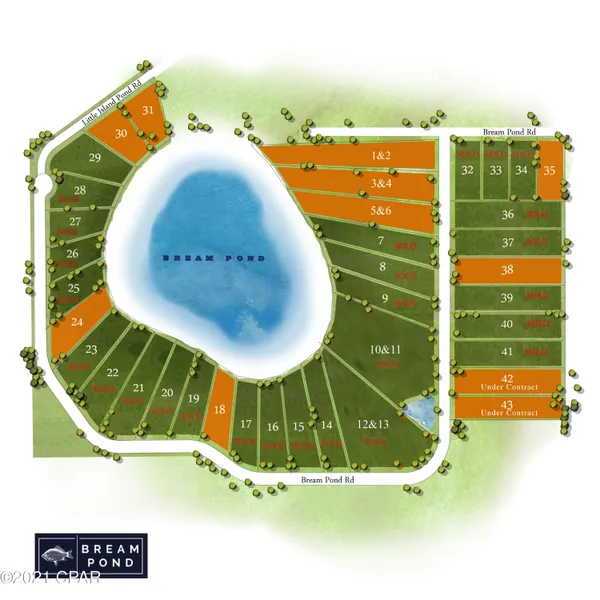BREAM POND 3 ACRE LOT-ATTENTION BUILDERS and DEVELOPERS - This is a Dream Property ready to BUILD-OUT. 40 separate parcels in a complete Subdivision surrounding and including Bream Pond in Northern Bay County. All Platted, Paved Roads, Underground Electric. With all of the recent Growth in the Sand Hills portion of Northern Bay County, this property is ready-to-go. This property is about 1/2 mile East of Hwy 77 and 1/2 mile South of Hwy 20 making it a very convenient location. Bream Pond is a Beautiful approximately 30 Acre Lake that is known for it's fishing. It has clean clear water and a white sand lake bottom making it a desirable Lake for swimming, kayaking , and other water activities.