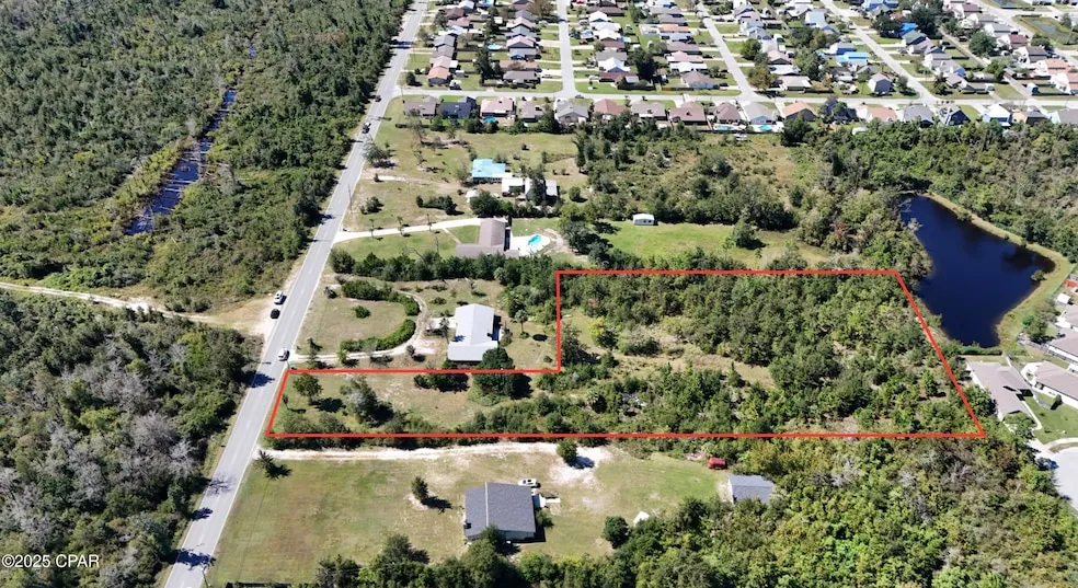 Incredible Opportunity here! Seller is also selling the adjacent home on 1.09 acres MLS 961911 - will consider selling together - house is in blue outline, land is in red outline, outlines are approximate - buyer will need to verify dimensions. This listing is for a flag-shaped 2.99 acres parcel, vacant and undeveloped land and ready for your creativity, design, and dream. This is an investor's playground, ready to be developed and tons of potential here. The property allows horses and can also have multiple homes here, such as a small neighborhood or small community. The land is near a pond in the back but the pond is not included in the land. Please see aerial maps. The land has beautiful mature trees and tons of opportunity here. Zoning R-1. The land does not have but will need private well and private septic. Future Land Use per Bay County Comprehensive Plan (Buyer is still advised to complete their own due diligence) states the following: Allowable Uses: Those land uses typically associated with residential occupancy including single-family, duplex, triple, quadraplex, condominium, townhouse, apartments, cooperative, manufactured housing and public facilities. Public utilities, recreation, conservation. Limited public institutional uses and educational facilities. Density housing: urban/coastal - no more than fifteen (15) dwelling units per acre, Other Urban - up to twenty-five (25) dwelling units per acre contingent upon availability of facilities and services. Suburban - no more than five (5) dwelling units per acre contingent upon availability of facilities and services. The buyer is encouraged to obtain a current survey. Please contact Bay County for development guidelines and what is allowed.