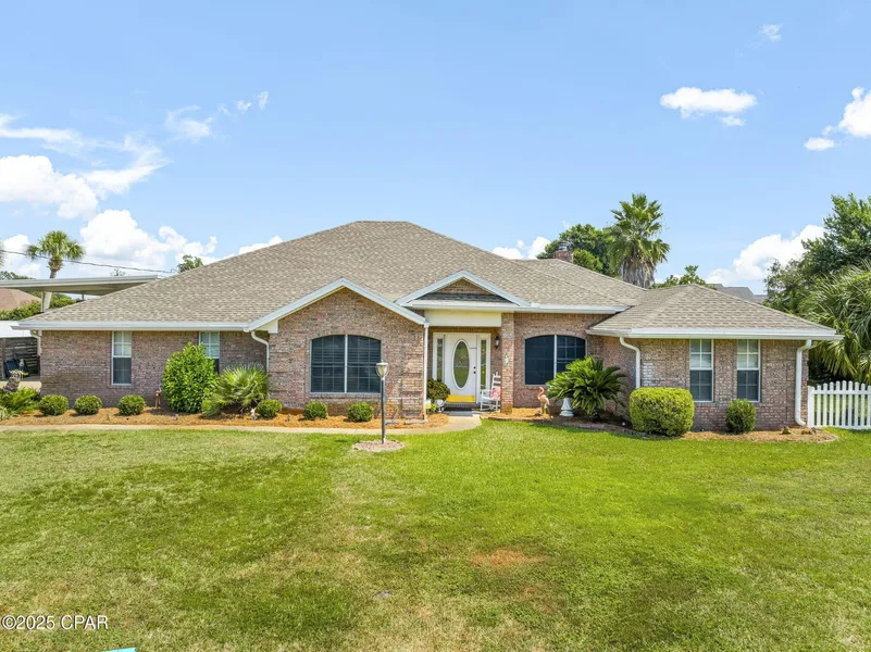Waterfront Home with Bay Access in Kings Point! This all-brick residence offers a lifestyle of comfort and convenience with multiple sought-after features. Enjoy your own private in-ground saltwater pool and a spacious RV pole barn equipped with a 30-amp service, perfect for recreational vehicles or boat storage. Step inside to discover tall ceilings, grand Livingroom with built in shelving, a Florida room that has been fully heated and cooled, serving as a second living space or Family room with panoramic windows overlooking the beautifully landscaped backyard. From here, you can take in views of the pool, canal, and outdoor entertaining space. The backyard features Saltwater pool, a covered pergola perfect for a grilling station and open space for lounging poolside making it an ideal setting for cookouts, gatherings, and relaxed Florida living. This Beautiful setting backs up to a canal with seawall and dock access, making it ideal for waterfront living. The interior includes a cozy gas fireplace, ideal for creating warm holiday gatherings and a classic focal point for seasonal decorating. The kitchen is designed with custom cabinetry, pull-out drawers, and smart shelving to maximize organization. The primary suite offers a luxurious retreat with a jetted tub, separate shower, and a well-designed layout. Additional highlights include a sprinkler system, a well and septic system and propane gas, and a two-car garage. For added convenience, this property can be sold furnished, with only a few sentimental pieces excluded (please refer to Realtor remarks for details). Located in the desirable Kings Point community, this home is close to shopping, dining, and local schools. It is approximately a 25-minute drive to Tyndall Air Force Base and about 20 minutes to the Naval Support Activity Panama City, making it an excellent option for those needing convenient access to military installations.