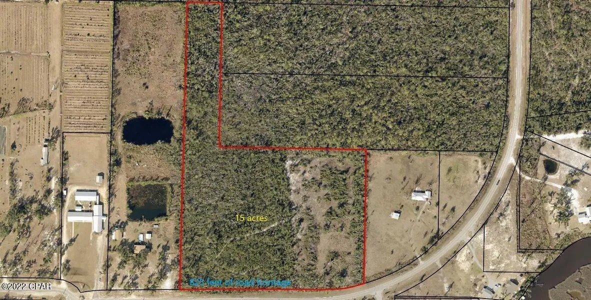 15-acre parcel located on Hwy 2297. Close to Tyndall AFB, shopping, and restaurants. This parcel is irregular-shaped. It has 825 ft of road frontage, and one side is 600 ft deep. The elevations are 13 to 17 ft. Hwy 2297 has a road count of 1200 cars per day and is zoned R-1. This property would make a great homestead, small ranch, and good tax exception. Also, be a perfect place for recreational parking. The location provides many possibilities and opportunities. Grab yours today.