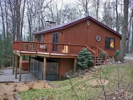 PRIVACY is definitely the reason to own this lake home w/225' of frontage and 3.5 beautifully wooded acres. Charming cedar sided home offers 2 levels of living w/floor to ceiling brick fireplace in the living room and free standing gas fireplace in the lower level family room. Hickory kitchen cabinets and tile floors. Large upper deck off the living room & master BR. Lower patio area w/hot tub. Lakeside deck and gazebo. 2 car garage and 34x36 storage bldg. The boat and canoe are inc. and ready for you to start enjoying the crystal clear waters of Lost Lake.