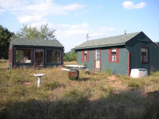 29 acres on the edge of town with seasonal Amish cabin, screen house and storage shed. Cabin has enclosed bio-toilet. Includes generator and is partially furnished. Great spot to build or just hang out. Many beautiful pines are the backdrop for this site. Property has lots of road frontage but access to the flowage may require a boardwalk. Much of the wooded area is wetland. Property is zoned residential and would be suitable for subdividing.