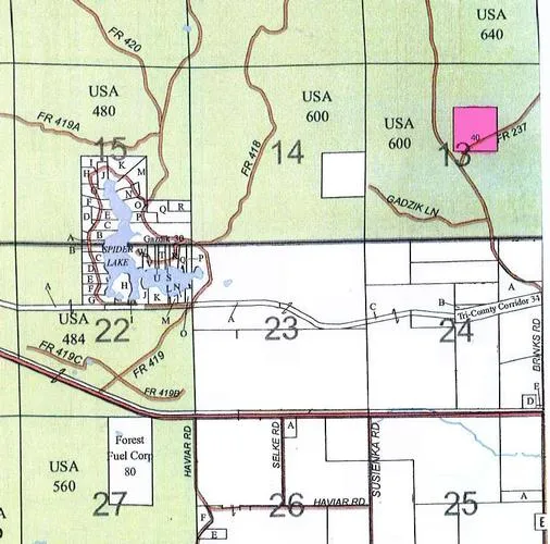 Location, location, location certainly applies even when your focus is on hunting or recreational sports. This parcel is located within the national forest yet only one mile from the Tri-County Recreational Corridor and 1.5 miles from Ino along US Hwy 2. These isolated parcels in the national forest are a rare find, especially with road frontage. The surrounding national forest land is marked. Ino is located between Ashland and Iron River. Brinks Rd is blacktopped and is on the fall color tour which runs all the way to County Hwy C through the Chequamegon National Forest. Ino is located between Iron River and Ashland.