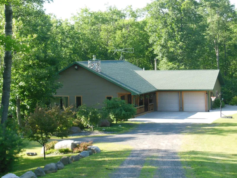 Beautiful upscale home in a private lakefront setting with 500+ft of frontage on Johnson Lake. Open concept kitchen and living room with cathedral ceilings, tile floors, rustic maple cabinets, and field stone fireplace. Master suite has its own deck, spacious walk-in closet, and master bath features in-floor heat, tile shower, jet tub, and dual sink vanity. The home also includes a sunroom and large deck offering spaces to enjoy the scenic views overlooking the lake. The land consists of rolling terrain with a mix of hardwoods and pine. Chequamegon National Forest is across the road, and the property borders Bayfield County Forest. A strategically located food plot would help draw those big-woods bucks from the vast expanses of surrounding forest. Countless opportunities for outdoor recreation with many lakes, rivers, trout streams, ATV and snowmobile trails nearby. Long Lake boat launch...