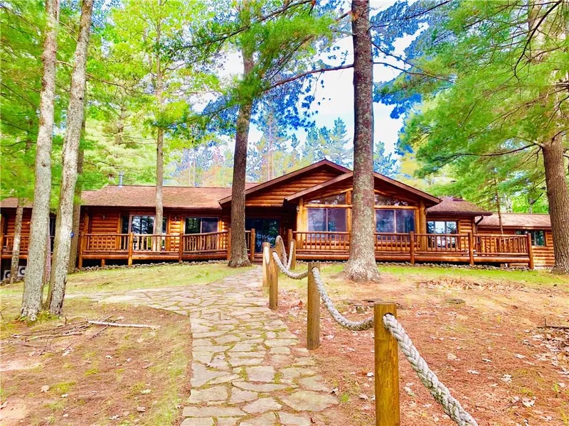 Quite possibly the best spot on Middle Eau Claire Lake! With 1000 feet of level sugar sand frontage and 23 acres, you'll have your own private retreat! A blacktop drive winds you through the mature hardwoods to this beautiful home. Prominent features include two fireplaces, a master suite with patio doors leading out to your lakeside deck, in-floor radiant heat, 3 season room overlooking the lake, wrap around decks, and a pole shed for plenty of toy storage. There are endless possibilities awaiting you at this very rare parcel on crystal clear Middle Eau Claire lake!