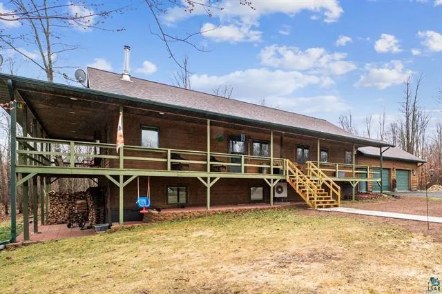 Peaceful country home on 10 wooded acres with ponds! The well-appointed kitchen, has ample counter space, modern appliances, pantry and custom hickory cabinets. Adjacent is a large dining area that walks out to the wrap-around covered. The home boasts 4 generously sized bedrooms including a master with walk-in closet and ensuite. The lower level is bright with natural light and walks out to the yard. The 30x30 attached and 40x26 detached garage provide ample space for storage and workshop activities. Located in a sought-after area, this exceptional property offers the perfect blend of rural tranquility and a quick commute to the Twin Ports. Don't miss your chance to make this dream home a reality!
