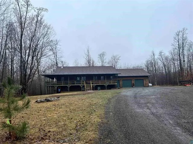 Peaceful country home on 10 wooded acres with ponds! The well-appointed kitchen, has ample counter space, modern appliances, pantry and custom hickory cabinets. Adjacent is a large dining area that walks out to the wrap-around covered. The home boasts 4 generously sized bedrooms including a master with walk-in closet and ensuite. The lower level is bright with natural light and walks out to the yard. The 30x30 attached and 40x26 detached garage provide ample space for storage and workshop activities. Located in a sought-after area, this exceptional property offers the perfect blend of rural tranquility and a quick commute to the Twin Ports. Don't miss your chance to make this dream home a reality!