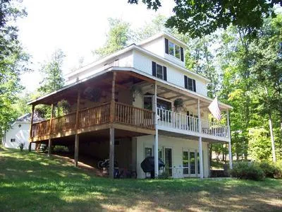 This 1890s 2 story home was relocated & totally renovated in 1997 to its current location in grand style with its wrap around varanda deck & victorian style interior. This home features walkout basement w/in-floor heat & patio, maple floors & cherry cabinets. Garage features second story studio. Panoramic views from all levels.