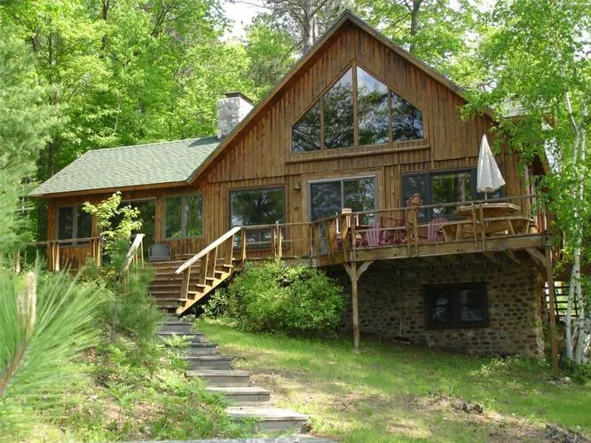 FOR VACATIONS OR A LIFE TIME-- this could be the log home you've been searching for located on the crystal clear waters of the famous Pike Chain of Lakes. Maple floors, cathedral ceiling, loft Master Suite and study, 2 natural stone fireplaces, finished lower level with sauna and rec room. Magnificent sunsets from the wrap-around deck and 365' with sandy beach. Experience it all even a mystic nature walk throught natural wetland area that you have to experience in person!