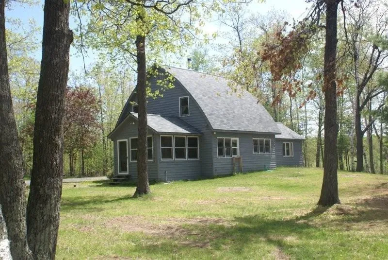Secluded Bismark Lake home. Modified Capecod style home with 2 large bedrooms up and master suite on the main level. 4 season sunroom and large kitchen have beautiful views of the lake and sunsets. This home sits close to level with the waterfront, swimming area and excellent fishing in this clear water lake. This 25+ acres is at a dead end and there are only a few other homes on the lake. Superior privacy!