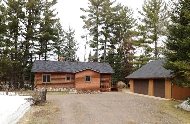 This move in ready log home features floor to ceiling fieldstone fireplace, open living area and lakeside deck all on manicured lot with spacious 3 car detached garage. Lot has tall pines and 150' of sandy beach. Pigeon Lake is 213 acres and only 4 miles from Drummond. Home and garage both have newer roofing. This home has such a warm, inviting atmosphere about it and is in excellent condition.