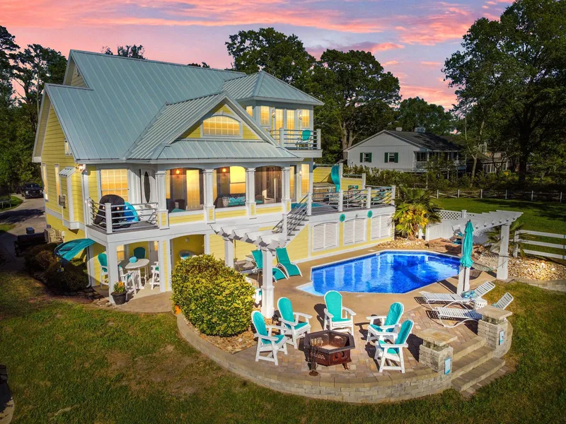 Discover the ultimate riverfront living experience with two stunning properties in Washington, NC. At 168 E River Acres Rd., you'll find a beautiful home situated right on the Pamlico River, featuring 60 feet of bulkheaded riverfront, a pier with boat and jet ski lifts, and breathtaking views of the water and landscape. This meticulously crafted home boasts hardwood floors, granite countertops, an open floor plan, and spacious living areas perfect for entertaining. The cozy bedrooms provide a serene retreat, while the beautifully landscaped outdoor area, complete with a pool overlooking the river, offers endless opportunities for recreation, including fishing, boating, swimming, and kayaking. Enjoy unforgettable sunsets and the tranquil sound of the river from your deck, screened-in porch, or inside the home.