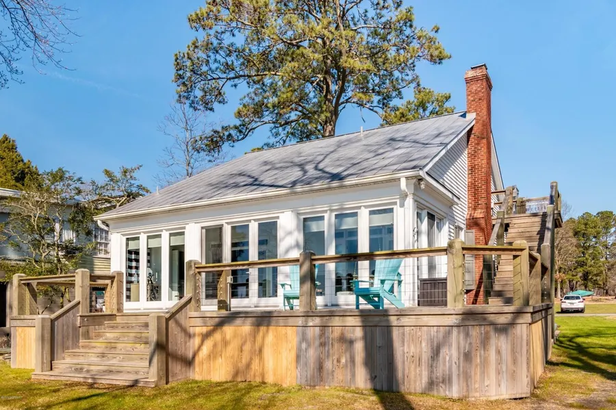 Stunning!! Waterfront Living at its Best in the desired Community of Bayview overlooking the Beautiful Views of the Pamlico River! Find Peace & Relaxation! One of Kind, Stunning, Custom Home w/ Cottage Charm throughout & room for everyone! Vintage hardwood floors, ship lap, crown moldings, open floor plan, completely newly remodeled kitchen, granite countertops, slate appliances, custom hood, alarm system. Living area has fireplace w/ gas logs, custom built-ins, French doors open to Spacious Sunroom which offer Expansive Views of the Water, additional lounging, dining area & wet-bar. 1st floor Master Suite also has French Doors opening to the Sunroom. 4 BD, 2 BA. Upstairs has 2 large BR, lg closets, ample attic space, Private Deck w/ outside entrance & Cargo Lift. Outdoors features lg Custom Deck, Pier, Boathouse, Boatlift, New electric Jet-ski Lift, Grilling area w/ gas hook-up. Second ...