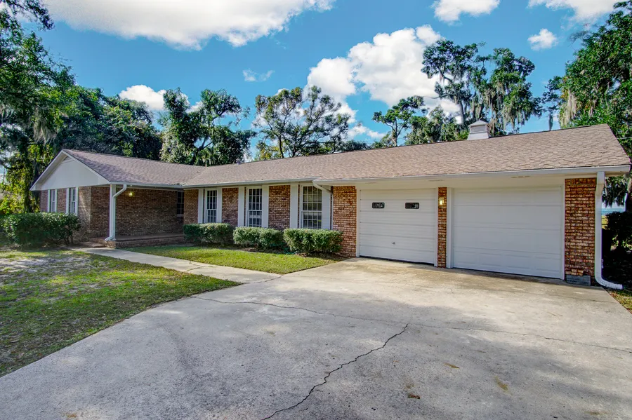 Magnificent views of the Broad River from your own full acre double lot that has 200 ft unobstructed frontage. 12' & 13' Elevation with a bluff. Brick ranch home with crawl space that has 4 bedrooms, 2 full baths, spacious living room, and open dining room. Open family room to the breakfast area and an office area. Spacious entry foyer to the living room & family room. Sauna room. All interior walls are freshly painted and new flooring. Entire living area of the home is on one level, no interior steps. Attached large double car garage with two separate doors. Garage gives a secure and weather protected access to the kitchen. Plenty of oak trees on the property. The entire backyard has a chain link fence. Just minutes for shopping and restaurants. Easy commute to Bluffton and Hilton Head. Private yard well.