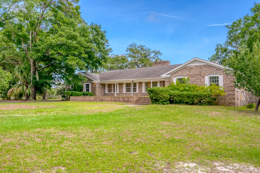Truly unique property for the buyer who is looking for a natural setting with some elbow room. No cookie-cutter here! A stunning setting, overlooking a pond and tidal creek, with large oaks and an abundance of wildlife. Brick ranch all-on-one-level home with a formal dining room, family room, sunroom, ideal for family gatherings. Large kitchen with plenty of counter space. Double fireplace accesses both the living room and family room. Cozy sunroom overlooking the pond, ideal for watching the deer, birds, ducks. Large garage w/a workshop, and custom made hurricane shutters. This home has been lovingly maintained by one owner and must be seen to appreciate the tranquil setting.
