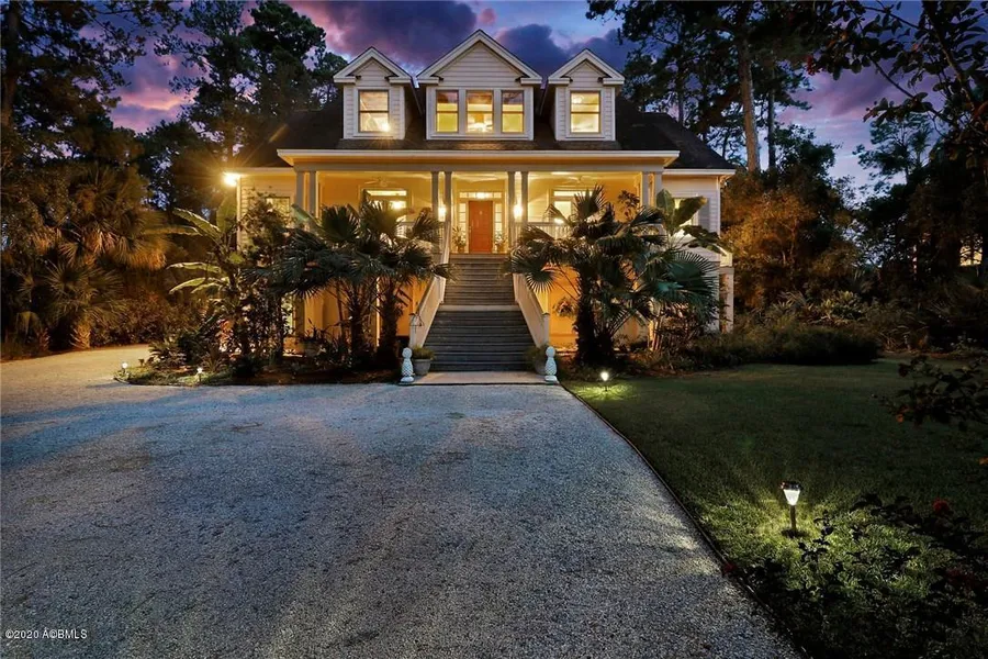 A lush tropical paradise awaits on Blue Heron Pt, a peninsula along the Intracoastal Waters of HHI offering oversized lots with a quaint community feel & no POA fees! This perfect multi-generational home has been meticulously maintained by its original owners and features heart pine flooring, an elevator accessible from all floors, 2 home offices, custom wood cabinetry, exterior decks, 4 car oversized garage, temp controlled storage room and over 600 sqft of ready to finish space, perfect or a secondary master suite. Massive enclosed ground floor space, perfect for a workshop or that boat you've always been promised. Tidal Dock Permissible.