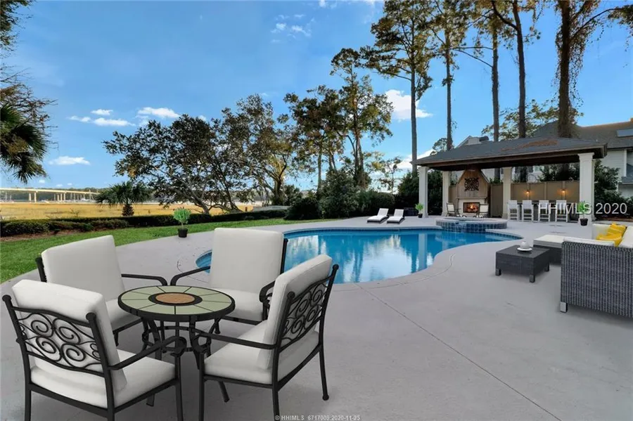 Located along Broad Creek in the most coveted community on HHI, known for large homes sites, natural landscape and moss draped oaks. This incredible estate offers everything you need to live the Lowcountry life. Centrally located by car/boat to restaurants and the world renown beaches. Features of this estate include; dock w/jet-ski dock, 1st floor master and office, custom built-ins in every closet, 4 private guest ensuite's, each large enough to be a master, guest cottage with full bath, 3.5 car oversized garage, tons of storage, large butlers pantry, and the rest you'll have to see yourself.