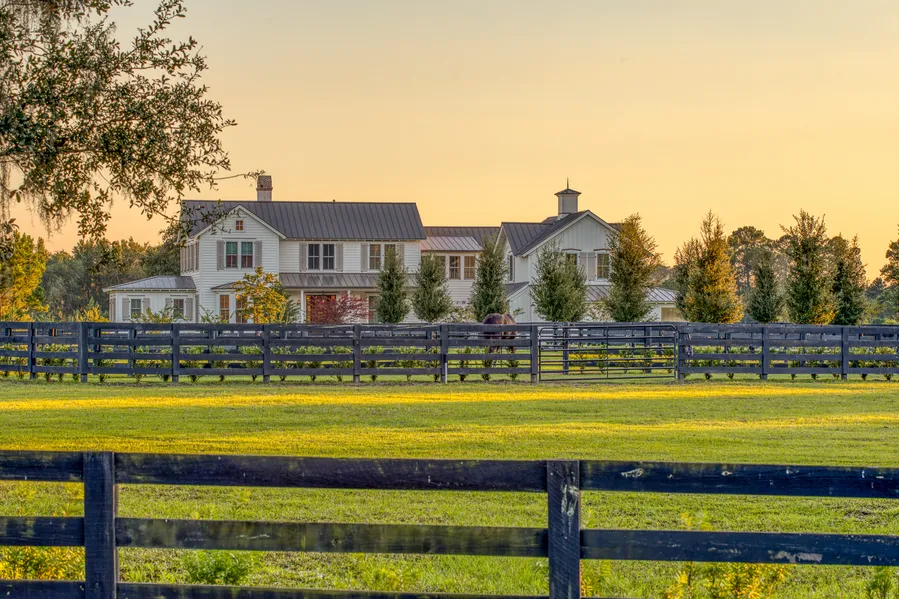 Welcome to Southern Oak Farm, arguably the finest luxury equestrian estate currently offered in the Lowcountry of South Carolina. Boasting nearly eight manicured acres within the gates of prestigious Palmetto Bluff, this offering provides the ultimate level of privacy and security amongst a backdrop of moss-laden live oaks and the vibrant sunsets that the Lowcountry is famous for showcasing. Upon entry to the gated and oak-lined drive, the 8 stall barn commands the attention of the most discerning of equestrians, and includes two heated tack stalls, feed room, tack room, office/flex space, an interior wash stall, and custom tongue and groove floor woodwork throughout. In addition, there exists 7 pastures, 3 day pens, a dressage arena, 6 run-in sheds, and 3 outdoor tack/wash stalls; truly paradise for both horses and owners alike. The newly constructed home itself offers approximately 6,500 square feet of luxury at every turn. Architectural nods to the Lowcountry can be found in the exterior use of board and batten along with accents of tabby stucco, a historical oyster shell material indigenous to the area. An abundance of spaciousness exists throughout every primary area of the home, crafting multiple opportunities for entertaining guests. The custom gourmet kitchen island offers seating for a minimum of seven people, while the overly spacious poolside screened porch creates an opportunity to bring the outside indoors by opening its double sliding doors. With 5 full bedrooms, his and her office spaces, two flex space game/media/bonus rooms, two laundry facilities, a prep kitchen certain to be coveted by any chef in attendance, in addition to the 400 bottle wine climate controlled wine room; the finishings throughout the home only serve to further enhance the quality construction, completed in 2021. Communities like Palmetto Bluff are increasingly rare along the eastern seaboard of the United States, and the introduction of Southern Oak Farm to the market is certain to attract not just the equestrian buyer in today's market.